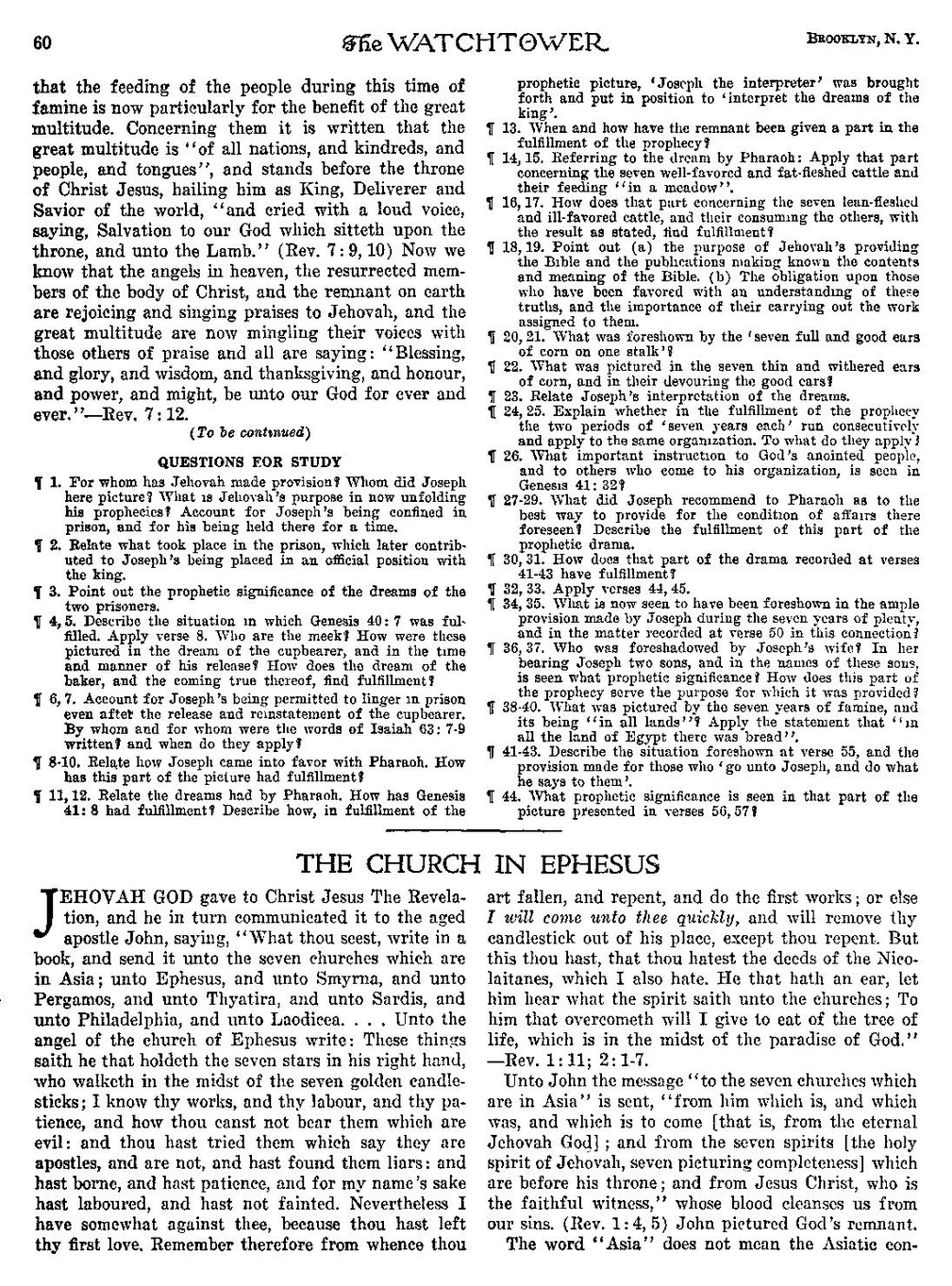 1 Pentru cine a făcut Iehova provizii? Pe cine a ilustrat Iosif aici? Care este scopul lui Iehova în dezvăluirea acum a profețiilor sale? Explicați de ce a fost închis Iosif și de ce a fost ținut acolo o vreme.