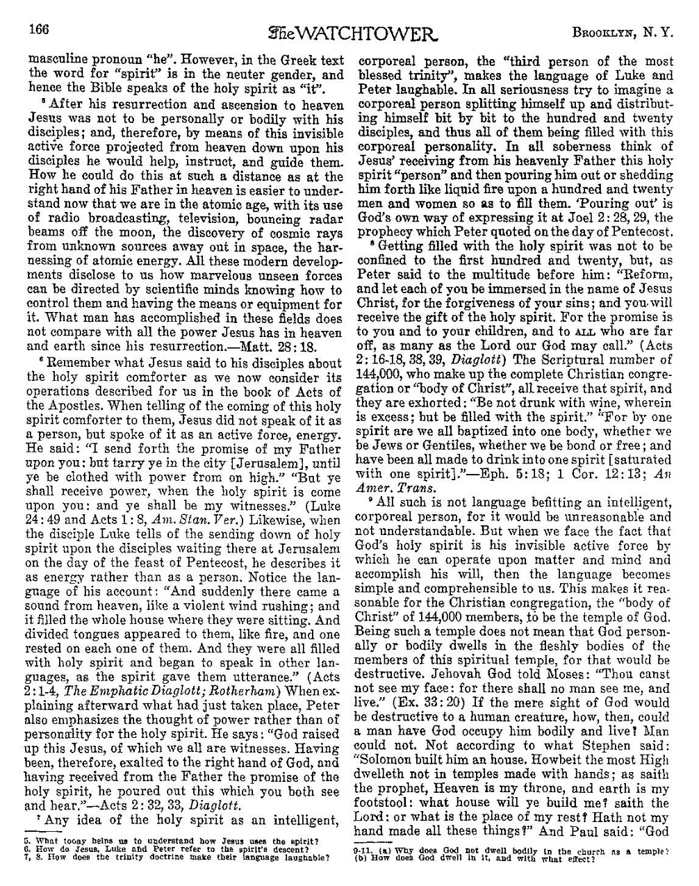 5 După învierea și înălțarea sa la cer, Isus nu a mai fost nevoit să fie personal sau fizic cu ucenicii săi; și, prin urmare, prin intermediul acestei forțe active invizibile proiectate din cer jos asupra ucenicilor săi, el avea să-i ajute, să-i instruiască și să-i călăuzească. Cum a putut face acest lucru de la o distanță atât de mare, cum ar fi la dreapta Tatălui său din ceruri, este mai ușor de înțeles acum, când ne aflăm în era atomică, cu utilizarea radiodifuziunii, a televiziunii, a fasciculelor radar reflectate de lună, descoperirea razelor cosmice din surse necunoscute din spațiu, valorificarea energiei atomice. Toate aceste realizări moderne ne dezvăluie cum forțe nevăzute minunate pot fi dirijate de minți științifice care știu cum să le controleze și care au mijloacele sau echipamentul pentru aceasta. Ceea ce a realizat omul în aceste domenii nu se compară cu toată puterea pe care Isus o are în cer și pe pământ de la învierea sa. - Matei 28: 18.