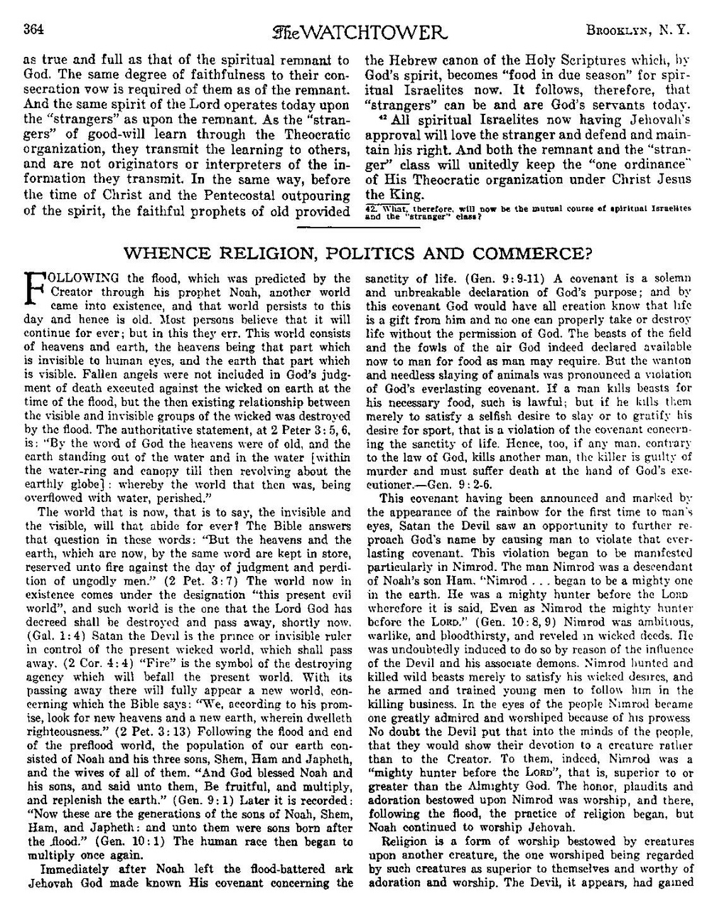 adevărată și deplină ca cea a rămășiței spirituale față de Dumnezeu. Aceeași măsură de fidelitate față de votul lor de consacrare este cerută de la ei ca și de la rămășiță. Și același spirit al Domnului operează astăzi asupra „străinilor” ca și asupra rămășiței. Pe măsură ce „străinii” cu bunăvoință învață prin intermediul organizației Teocratice, ei transmit învățătura altora și nu sunt inițiatorii sau interpreții informațiilor pe care le transmit. În același mod, înainte de timpul lui Cristos și de revărsarea la Rusalii a spiritului, profeții loiali din vechime au furnizat